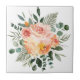 Fall Watercolor Rustic Pink Peach Flower Bouquet Ceramic Tile