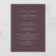 Designed to coordinate with the Lea Delaveris Design fall leaves autumn wedding collection, this wedding reception menu simple type and a season plum background. The text is customizable, allowing you to list all the meal offerings.