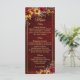 Fall wedding burgundy roses sunflowers menu card, table decor.