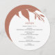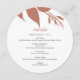 Enhance your fall wedding decor with this modern wedding menu from Do Tell A Belle’s Elegant Orange Wedding Stationery collection. Featuring a unique round design, this minimalist wedding menu showcases botanical autumn leaves in rich terracotta tones, adding a simple yet elegant touch to your wedding tablescape.