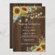 Fall Wedding Rustic wood string lights sunflower Invitation