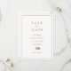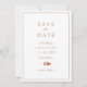 Simple Minimalist Fall Wedding Save the Date. This elegant wedding save the date features a beautiful branch of watercolor copper and rust leaves on a white background with a beige border.
