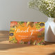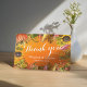 Wedding Thank You Card Templates - Elegant Autumn Maple Leaves, Pumpkins and Sunflowers Watercolor Flowers on Orange Gradient Background.