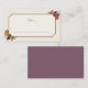 Fall wedding place card with autumn leaves and elegant purple frame, flat. Watercolor foliage escort card. Great for rustic weddings, Thanksgiving and other events.