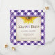 Announce your special day with this rustic save the date card, perfect for a fall wedding with purple gingham. Featuring a charming purple picnic checkered design, bold yellow sunflowers, and a vintage background, this save the date design sets the tone for rustic chic weddings, country celebrations, and barn or backyard venues. Your wedding announcement details are styled in bold sans and serif fonts, with the gingham pattern carried onto the back. A great choice for fall themed weddings and cozy gatherings. Shop more wedding save the date invitations at VG Invites on Zazzle: www.zazzle.com/vginvites.