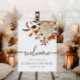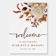 Fall Welcome Wedding Foam Board. This elegant wedding sign features hand-painted watercolor burnt orange and terracotta leaves, cream and beige dahlias, and beautiful rust-colored roses on a white background with brown text. Find matching items in the White Autumn Romance Collection.