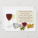 Elegant wine and cheese party invitation. Photographs of two wine glasses, a wedge of cheese and pretty fall leaves decorate this lovely invitation. Text area is in pale tan with a background of white. Text is fully customizable to suit your party needs.