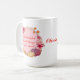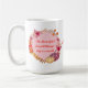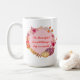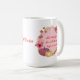 This beautiful fall wreath mug with a quote will make a wonderful gift for a coffee lover who also loves inspirational quotes. The design features a watercolor image of a wreath made of pumpkins, flowers and leaves in fun pinks and oranges. The mug can be personalized with your own quote and name. This would make a great gift for Thanksgiving or any other special event happening during the fall season.