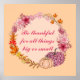Decorate your room, living room or office with this beautiful fall poster. The design features a fall wreath made from pumpkins, flowers and leaves in fun shades of pink and orange with a quote inside. This poster can be personalized with your own text.