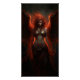 This striking dark fantasy poster depicts a powerful fallen angel surrounded by blazing crimson wings and shadowy flames. Her intense gaze and fiery aura symbolize passion, rebellion, and inner strength.
