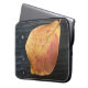 On this 15” Laptop Sleeve is an original photograph by ZoeSPEAK of a sea grape leaf, fallen from a bush onto the wooden boards of a deck, helped along its way by an afternoon shower. The grain of the wood glistens in the wetness, and the nails shine like accent marks. The yellow and orange colors of the leaf stand out against the dark background.