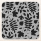 Fallen Leaves Big Pattern Black on Grey Square Paper Coaster