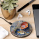 The colorful image on this Wireless Charger is an original photograph by ZoeSPEAK of fallen leaves on a small beach edged with mangrove trees. Struck by the sunlight, the sea grape leaf is a bright red orange. Other leaves are yellow, green and blue marine with cobalt highlights. Tiny sea shells are mixed in with the sand, and a few pine needles add visual texture.