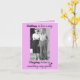 A black and white vintage photograph of a happily married couple adorns the front of this card. Pink background with text that reads: "Falling in love is easy. Staying in love is something very special". Inside customizable text reads: "Wishing you a Happy Anniversary".
