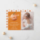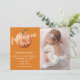 Send your loved ones a baby birth announcement during the fall featuring a photo and a pumpkin with text "falling in love". The back features a fall pattern of watercolor pumpkins.