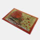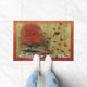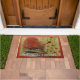 Falling Leaves Landscape Monogrammed Door Mat. Green, yellow, orange, rust, and red leaves blowing threw the air from the distant trees. Gorgeous rustic Autumn scenery and the feel of Fall on a warn stone background to enhance your decor for the holiday season. Wonderful for American and Canadian Thanksgiving Holidays.