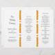Fold this wedding program template in thirds after purchase. Two lines of fall colored leaves divide the sections. Black template text is easy to change and customize for your ceremony. It will open like an accordion with all printing - images and text - on ONE SIDE ONLY. Choose any type of paper, recycled is shown.