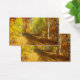 An overgrown path meandering through the birch forest on a sunny autumn day. The black and white trunks of the trees contrast with leaves and grass in all shades of gold, from pale yellow to deep orange, lit by the sun rays streaming through the branches.