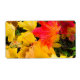 Falling maple leaves on a ground label