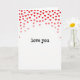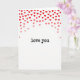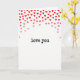 This greeting card keeps things simple and sweet, with a white background that lets the message stand out. In the center, the words “love you” appear in black, using a typewriter-style look that feels direct and honest. From the top edge, a trail of red hearts falls downward like a little shower of affection 💘. The hearts vary a bit in size, and some look more solid while others fade lighter as they get closer to the words. A few hearts have slightly uneven edges, which makes them feel more human and less perfect in a nice way. There aren’t any other objects or scenery, so your eyes go straight to the hearts and the message. It’s an easy card to give to a partner, close friend, or anyone you care about ❤️😘.