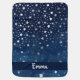 Beautiful night sky dark blue celestial background with falling silver stars. Customize baby blanket with name or other special message