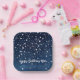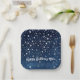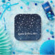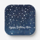 Paper party plate features beautiful night sky dark blue celestial background with falling silver stars. Personalize with name or other special message.