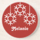 Chic and simple Falling Snowflakes Holiday Sandstone Coaster featuring a trio of modern and sleek snowflakes. This Christmas coaster makes a stylish gift. Customize this falling snowflake design with your own personalized text.