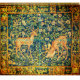 Deers,green yellow floral swirls flowers digital elaboration from antique Flemish tapestry..