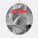 Lightweight, smooth, pure white ornament with nice sheen. Perfect size to be seen from across the room ... and to attract closer inspection! Price was great for ordering enough for the whole family! Clear, bold black design just as requested. Matches the order exactly. Just so nice!