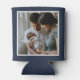 Introducing our family and kids 2 photo can cooler. This design features a dark blue background with a square image on the front and back. The image is surrounded by a thin white border, creating a sleek and elegant aesthetic.