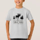 Boy's T-shirt with your personalized family name and cabin, cottage or other desired text along with an established date and location. This custom design features rustic style typography with artwork of a moose and pine trees silhouette in black. To see more designs like this, feel free to visit my store here at "Zazzle.com/Rustic_Charm". Thanks.