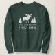 Women's sweatshirt with your personalized family name and cabin, cottage or other desired text along with an established date and location. This custom design features rustic style typography with artwork of a moose and pine trees silhouette in white. To see more designs like this, feel free to visit my store here at "Zazzle.com/Rustic_Charm". Thanks.