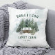 This pillow is a great personalized home décor accent for your family cabin. It features a rustic watercolor scene of a cabin nestled in the woods, with snow-covered pine trees, with family name and year established.