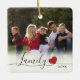 Family Calligraphy Heart Photo Christmas Ceramic Ornament