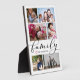 Modern photo collage plaque featuring 6 photos of your family, ''family'' typography script and name. Perfect as a gift or keepsake.