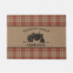 Family Farmhouse Rustic Tractor Red Plaid Burlap Doormat