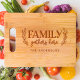 Gather around this beautiful Family Gathers Here cutting board, perfect for creating shared meals and lasting memories. This custom cutting board features a lovely design with the phrase "Family Gathers Here" and your family name, making it a cherished addition to your kitchen. Crafted from durable bamboo, this cutting board is as practical as it is beautiful.