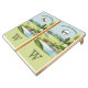 Natural Wood Cornhole Set, Yellow and Purple bags