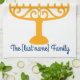 A great way to make a home a little more festive. This kitchen towel features a Chanukiah (Menorah) with customizable candles where you can type the first names of yours or a friend's/family members' family members. You can also replace the [last name] under the Chanukiah with yours or a friend's/family members' last name. Click/tap the Edit button then click/tap each blue text box and erase the place holder text to add first or last names depending on what is specified by the place holder text. You can also change the fonts I used and/or reposition objects if you would like to do so.