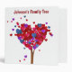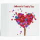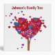 Red, pink, purple, and blue heart tree graphic with green grass on a white background for family tree scrapbook.