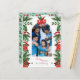 Merry Christmas postcard with a family photo, Christmas wish, and recipient address embellished with Christmas floral decorations. Easily customize with your family photo, colors, and text by clicking on "personalize this template". If you have any trouble adjusting the photo click on edit using the design tool and it will take you to an online designer where you can change and shift things around and even change the font type. This postcard is suitable as a family keepsake for Christmas season, a nice way of sending warm wishes to your family and friends.