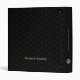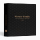 Name of the Family printed in bold light brown serif font, with initial repeated all over the dark background... to store your documents and notes... make it easy to organize and find... a modern and elegant professional touch