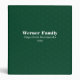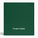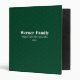 Name of the Family printed in bold serif font, with initial repeated all over the dark green background... to store your documents and notes... make it easy to organize and find... a modern and elegant professional touch