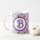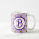 This monogram mug is a great way to personalize your morning tea or coffee. A gold star pattern appears against a purple background. The letter B in bright purple is featured in a center circle. Easily customize the colors to suit your desire. The letter "B" can not be customized on this mug. If you are looking for a different letter, please visit our store.