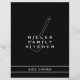 Custom double sided recipe divider page for a black and white cookbook recipe binder. Features family kitchen name with a cooking spatula utensil. A simple modern minimalist design in a classic black and white color palette with customizable text presented in stylish font.