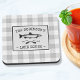 Beautiful, rustic themed cork back coasters with your personalized family name, lake house, fishing cabin or other desired text and it's established date. This custom design features rustic style typography with artwork of a fish and boat oars and framed in a white plaid style print with shades of soft gray. Feel free to visit my designer store to see more items and designs like this. Thanks.
