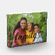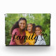 A stunning horizontal acrylic photo block featuring "Family" in elegant black calligraphy script with a heart flourish, layered over a single custom photo. The wide landscape format gives this piece a panoramic feel, beautifully showcasing a favorite family image. The photo is fully customizable. Printed on 1-inch thick Grade A acrylic, this photo block stands on any flat surface — a gorgeous keepsake or gift for any family occasion.