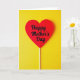 Designed with a large red heart placed near the center, the design suggests a gentle downward drift that feels like a shy offering between loved ones ❤️. The heart sits on a bright, evenly textured yellow background that reads like warm sunlight filling the whole scene. Its surface looks smooth and matte, giving the shape a soft, touchable look. Across the heart, a flowing black message is written right over the middle, standing out clearly against the red. The words curve slightly with the heart’s shape, like a quiet note meant for family or close friendship. A thin white stick extends from the heart’s pointed tip, making it resemble a sweet treat or a small token held out with care 🌼. The lighting stays diffused and even, with almost no shadows, and a faint texture difference between the heart and the yellow background adds subtle depth.