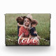 Using a beautiful and modern script for the word "Love", this family love photo can be easily personalized with your own favorite family photo. An elegant photo block to be cherished and displayed, a modern photo frame option.