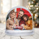 This charming snow globe features your favorite family photo with "Family" in elegant white script and a heart accent overlaid on the image. The back displays a second family photo for a beautiful two-sided keepsake. The white lettering pops beautifully against darker or outdoor photos. A thoughtful gift for grandparents, parents, or anyone who treasures family moments. All photos are fully customizable.
